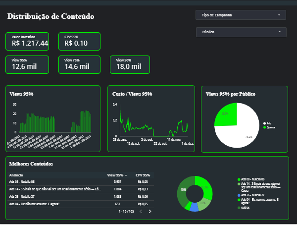 Uma das características que desenvolvi ao longo dos anos, foi um perfil analítico. E, como todo bom analista, para embasar soluções, são necessários dados. Para isso, hoje uso ferramentas como o Excel e o Google Data Studio para criação de dashboards e análise de dados. Esses foram alguns dos modelos que já criei.
